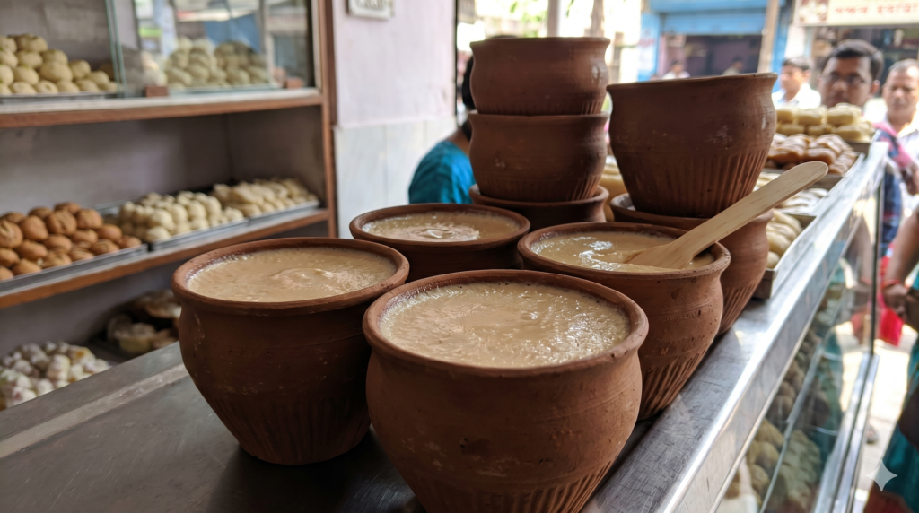 The final entry on our list of top 10 must-try foods in Kolkata is the irresistible Mishti Doi — sweetened fermented yogurt set in traditional earthen pots. The clay pot slowly absorbs excess moisture during the setting process, concentrating the flavours and giving Mishti Doi its characteristic creamy, slightly caramelised taste. It is one of the most unique and beloved traditional Bengali desserts.
